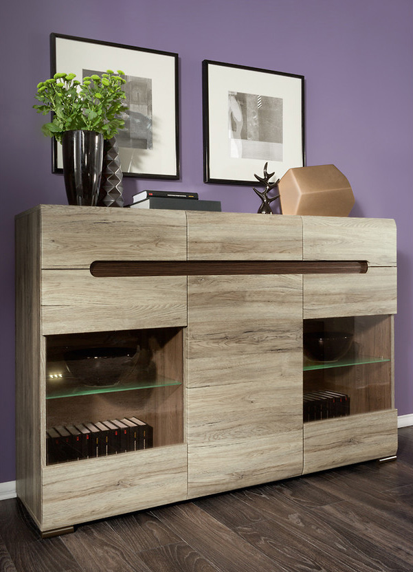 Меблі Ацтека БРВ - виконані в двох колірних варіантах: «дуб san remo / білий глянець» і «білий / білий глянець». Корпус виготовляється з ДСП, фасад - МДФ. Меблі Ацтека БРВ/ Azteca BRW привертає увагу заглибленими ручками оригінальної форми в кольорі «венге магія». Характеризується геометричними формами і закругленими краями фасадів.