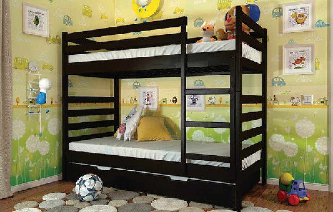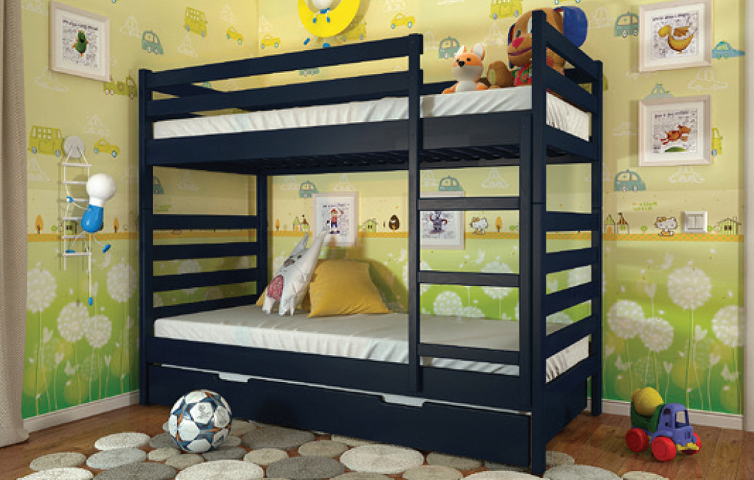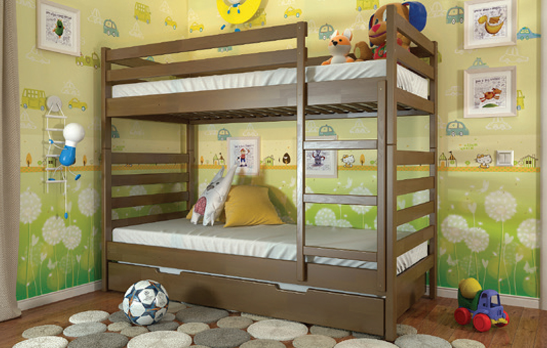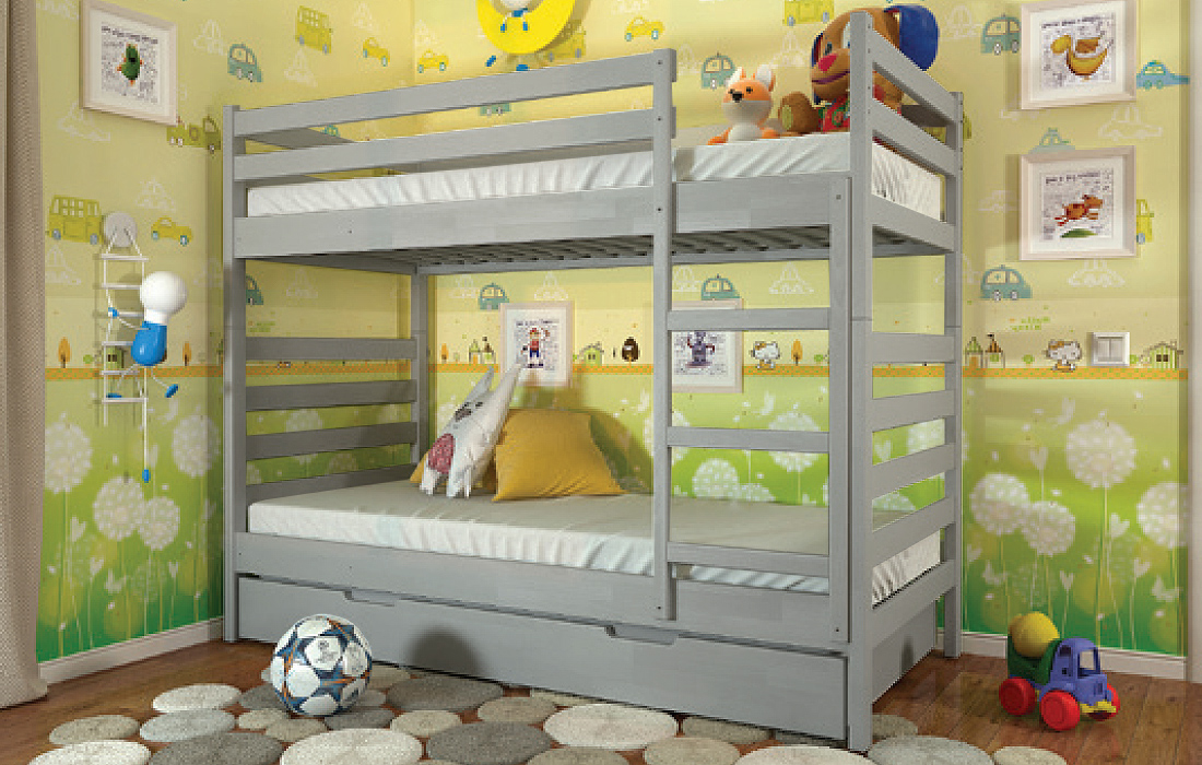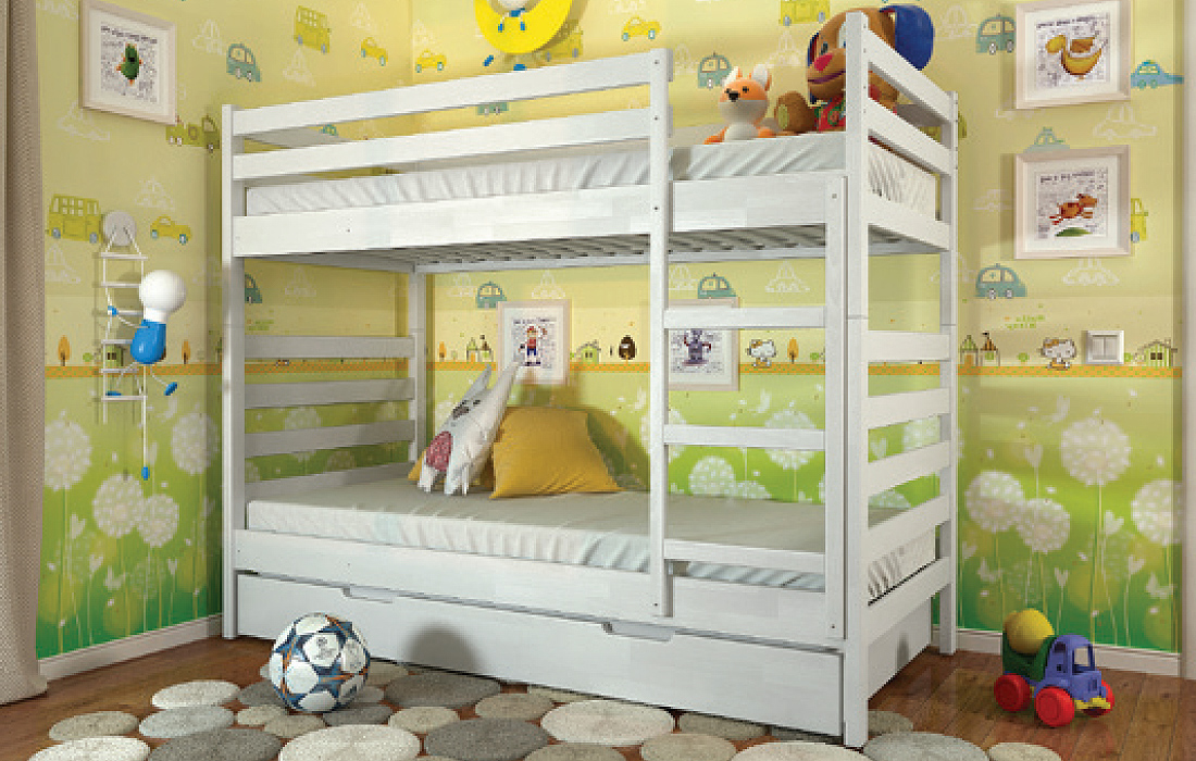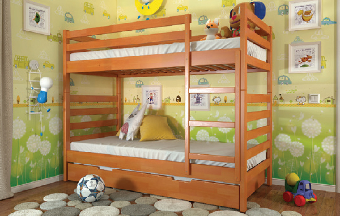 Двох'ярусне ліжко РІО – дитяче, або підліткове ліжко. Виконане з натурального дерева - щита сосни, або бука. Головними особливостями моделі є висока захисна спинка і бортик по всьому периметру на другому ярусі, ортопедична основа і можливість укомплектувати шухлядами для білизни (двома маленькими або одним великим). Ліжко виконане в сучасному стилі і характеризується чіткими лініями, простими геометричними формами і відсутністю зайвих деталей. Ідеальний варіант для батьків з двома і більше дітьми. Надійна сходи, ортопедична основа, міцні стійки, практичність і довговічність у використанні стануть головним критерієм при виборі даної моделі. Ліжко комплектується міцними ламелями з ламінованої фанери товщиною 8 мм. Спальне місце під матрац забезпечить комфортний сон для дитини або дорослого.